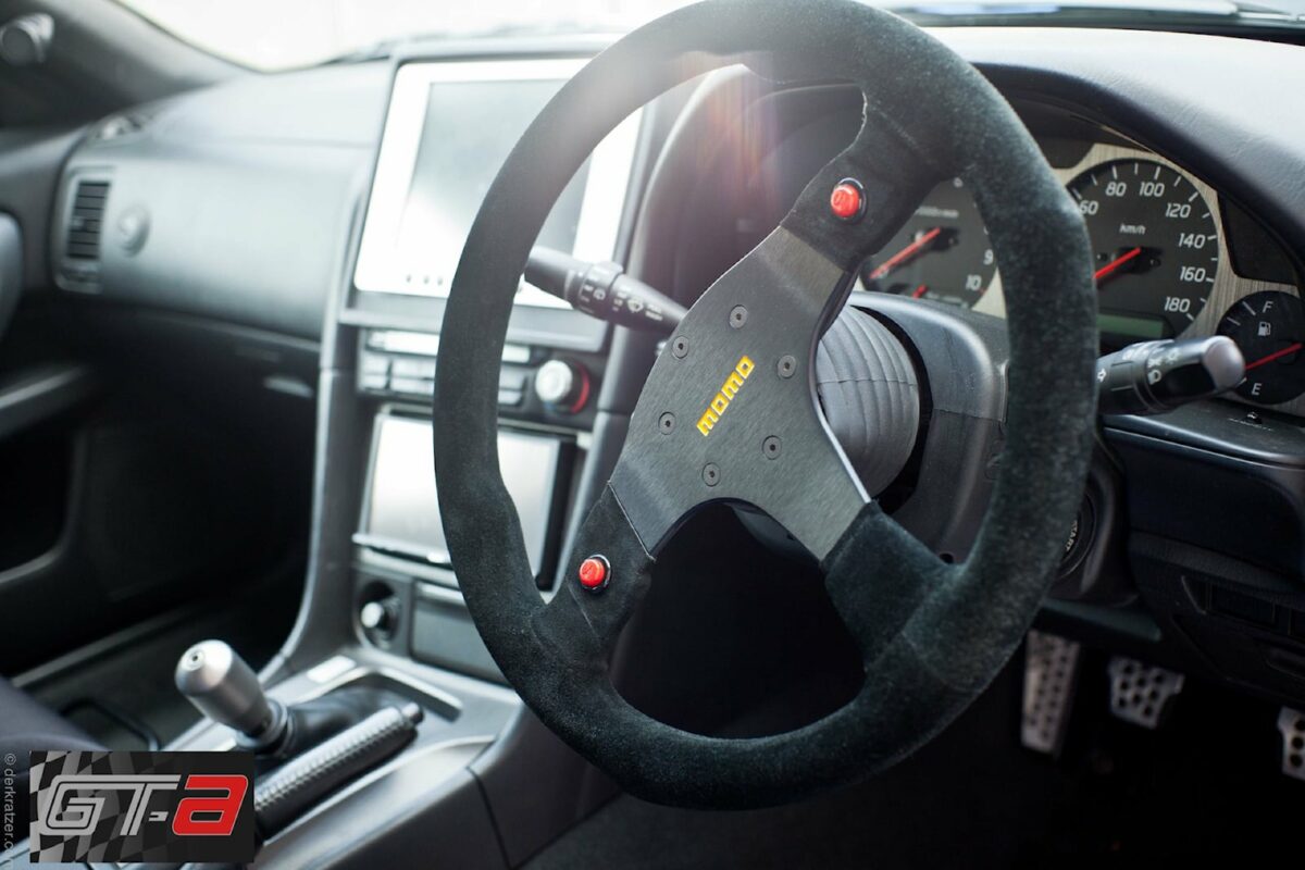 Pur essendo esteticamente molto simile all’originale, ci sono non poche modifiche. Il paraurti è infatti un Nismo Version II, i cerchi sono Volk Racing RE30 da 19 pollicci, e lo scarico Nismo NE-1 ne amplifica il sound.