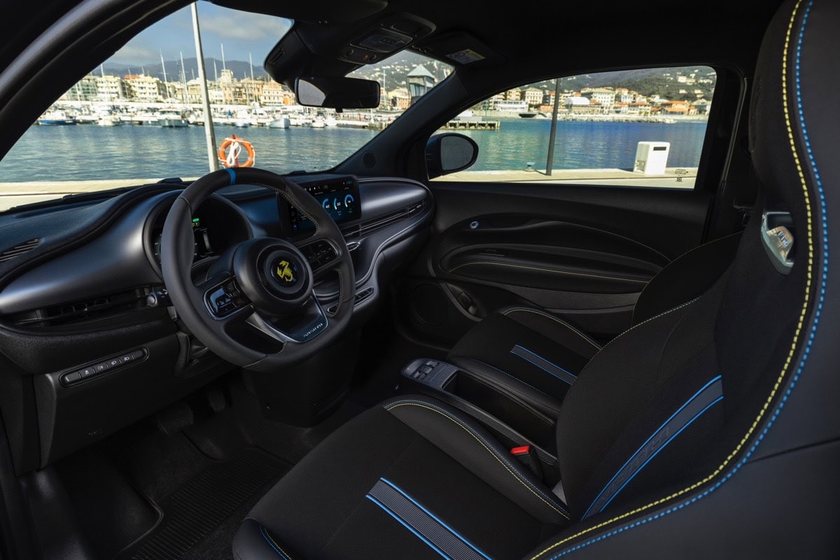 All’interno, l’atmosfera dark dei montanti e del cielo, i sedili sportivi con le “strisce dello scorpione” impresse sul tessuto, le doppie cuciture sportive e il volante rivestito in materiale soft-touch contribuiscono a creare un ambiente di guida sportivo e confortevole.