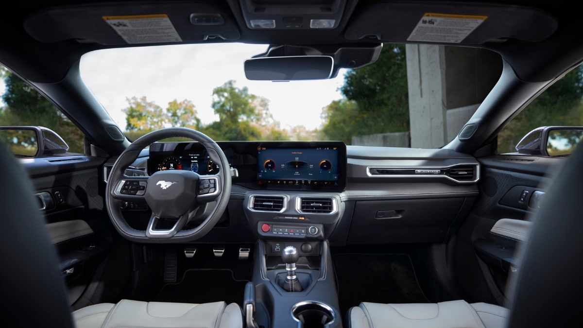 Le grafiche sono da videogame (dove la Mustang è gettonatissima) e sono spinte dal motore Unreal Engine 3D che serve anche a sviluppare il design personalizzato del quadro strumenti digitale. Oltre al classico infotainment, comunque, ci sono menu dedicati alla personalizzazione dell’assetto.