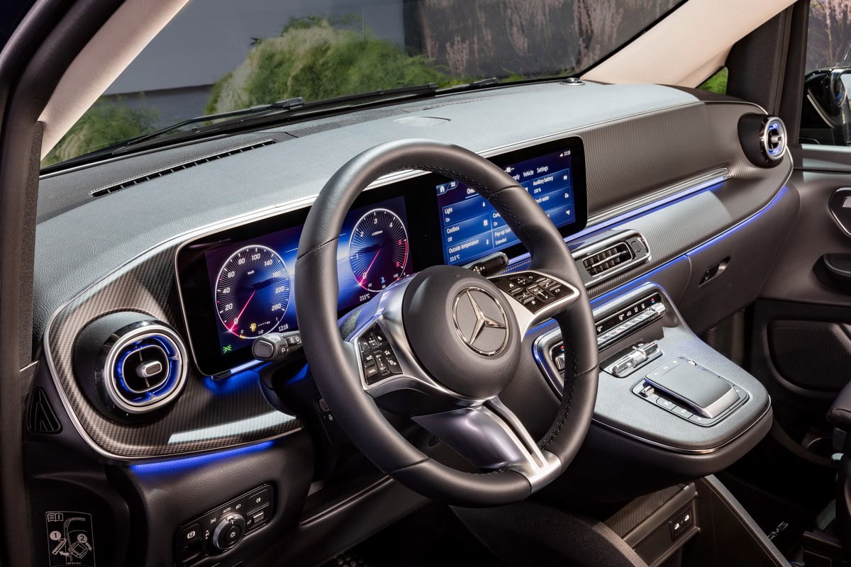 Altre nuove caratteristiche di comfort sono il riscaldamento opzionale del volante e l’illuminazione posteriore attenuata per la guida notturna. L’illuminazione ambientale, che ora si trova anche nella porta scorrevole posteriore del camper come opzione per la prima volta, offre un’atmosfera di luce ancora più individuale con 64 nuovi colori. Un altro importante vantaggio in termini di comfort è l’introduzione dell’attuale generazione MBUX. A richiesta, questa porta a bordo ulteriori funzioni, come il controllo del comfort Energizing o la navigazione con realtà aumentata.