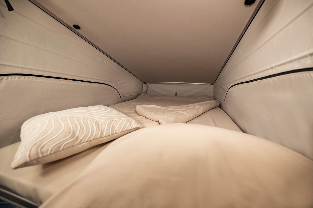 Il collaudato concetto di spazio abitativo della nuova Classe V Marco Polo rimane invariato. Il camper offre ancora spazio per un massimo di quattro persone ed è dotato di serie, tra l’altro, di un tetto sollevabile con letto a tetto, una combinazione di sedili e cuccette, un tavolo pieghevole, una cucina completamente attrezzata e un guardaroba.