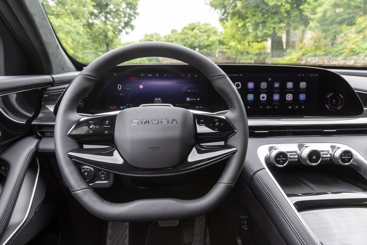 La batteria LFP da 34,5 kWh consente fino a 180 km di autonomia in urbano e 145 km nel ciclo misto WLTP. Si ricarica in circa mezz’ora grazie alla potenza in DC fino a 65 kW, e in AC a 6,6 kW. Numeri che avvicinano la Omoda 9 più a un’elettrica che a una classica PHEV.
