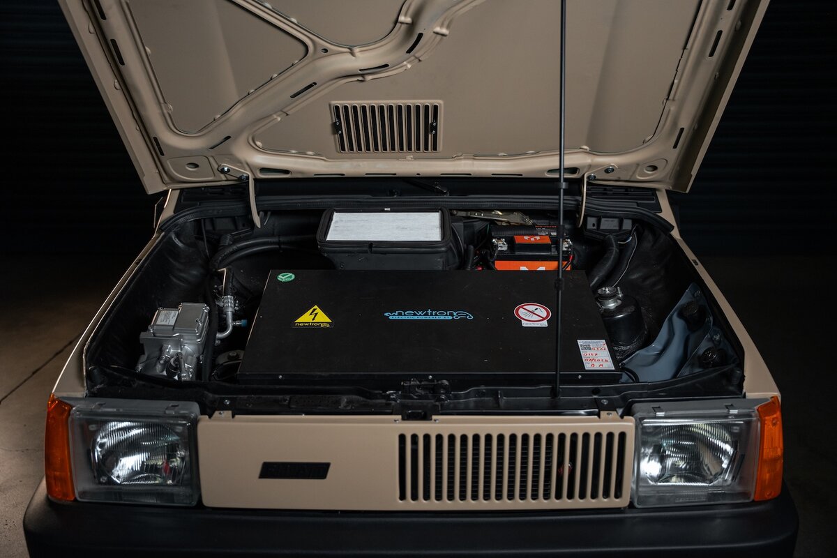 Realizzata artigianalmente da Garage Italia Customs e trasformata in elettrica da Newtron, Panduccia è pensata per l’uso quotidiano, ma conserva un’identità forte anche dal punto di vista estetico. La livrea richiama i colori della terra sarda, mentre gli interni sono stati progettati per essere facili da pulire in ogni condizione.
