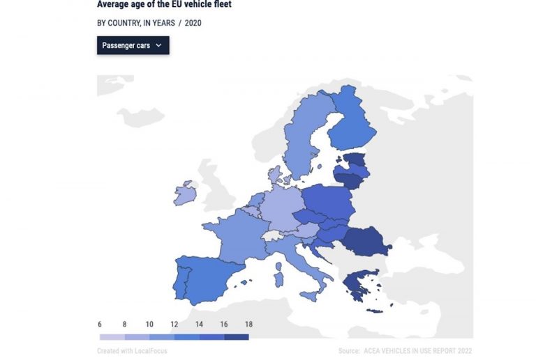 Lo abbiamo detto, le auto dell’UE hanno ora in media 11,8 anni. La Lituania e la Romania hanno i parchi auto più vecchi, con veicoli di quasi 17 anni. Le autovetture più nuove si trovano in Lussemburgo con 6,7 anni di età.
