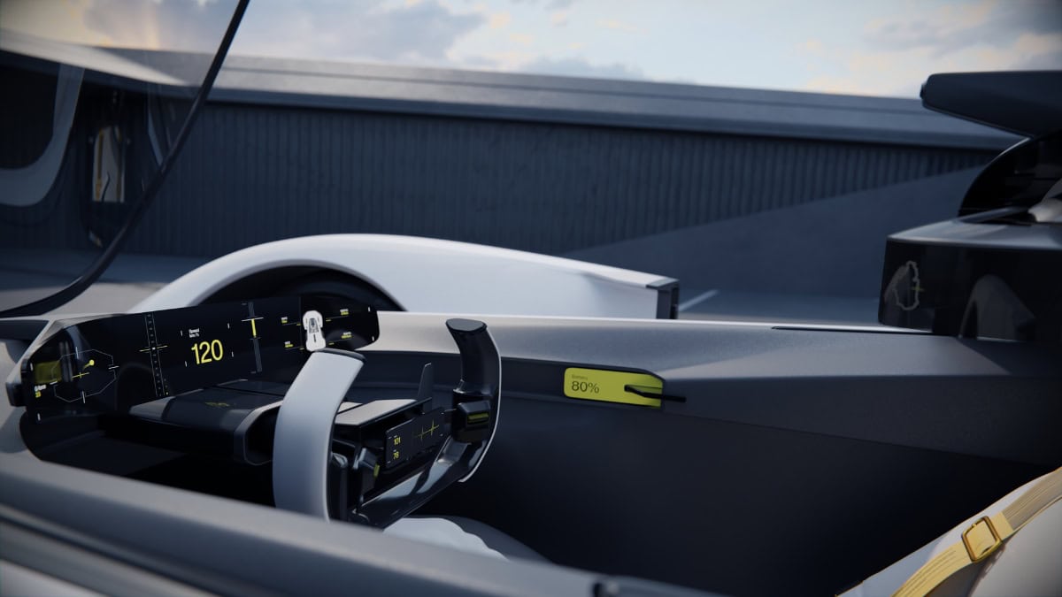 Il design dei fari è il Mjöllnir evoluto che a partire dalla Precept contraddistingue tutte le vetture nuove del marchio (3, 4, 5 e 6), ma portato all’estremo, con la parte superiore che si allunga superando tutto il passaruota e arrivando a metà della vettura.