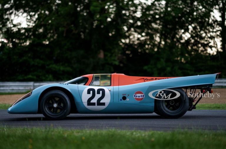 Questa Porsche stata guidata da David Hobbs e Mike Hailwood nella 24 Ore di Le Mans del 1970. Si tratta della stessa auto utilizzata come l’auto vincitrice nel film Le Mans di Steve McQueen. Bellissima la livrea da corsa Gulf tra le più iconiche della storia con il blu e l’arancione che hanno scritto la storia del design nel motorsport.