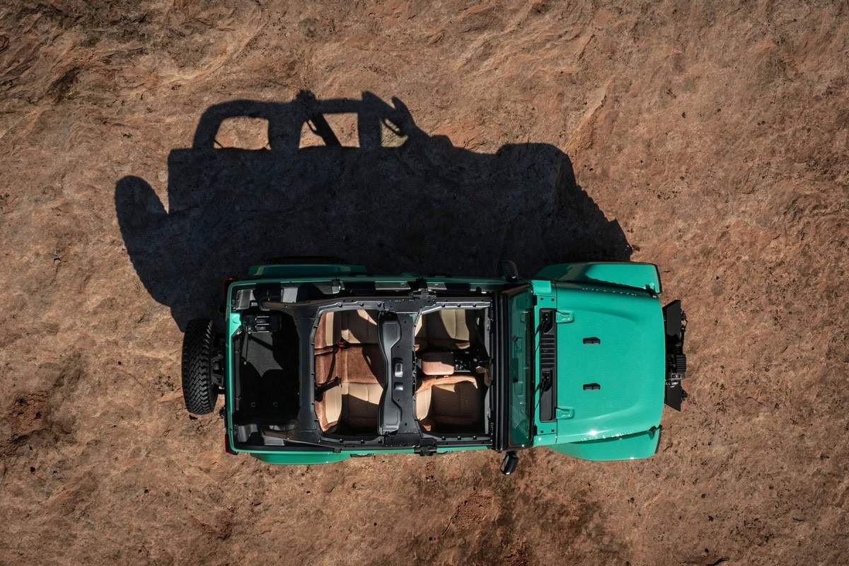 All’interno, i sedili sfoggiano il logo JPP in rilievo sui poggiatesta. Questi componenti sono stati appositamente ridisegnati con pelle Alea nera e marrone trapuntata e traforata. Il sun bonnet JPP offre protezione e riparo in tutte le condizioni climatiche. Completano l’abitacolo un kit di pedali JPP, tappetini all weather e battitacco.