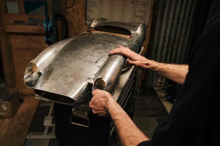 Ogni replica è stata modellata e battuta da fogli di alluminio usando tecniche tradizionali di carrozzeria, esattamente come i corpi originali furono creati dalle Carozzerie Scaglietti nel 1957.