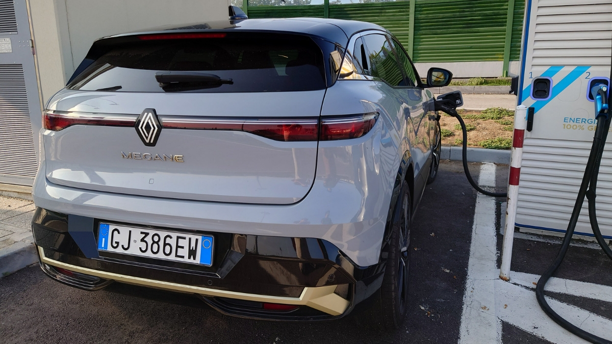 Rispetto alla mia 500, la Mégane elettrica ha una batteria più capiente e una maggiore autonomia: quella della prova è la EV60, a indicare la capacità dell’accumulatore di 60 kWh per 470 km nel ciclo misto WLTP. Parlerò tra poco dell’autonomia reale.