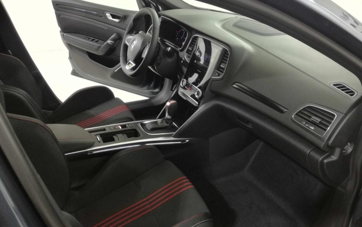Di profilo spicca il logo RS Line, incastonato su sfondo nero, e i grandi cerchi in lega, molto dinamici. Anche il posteriore è molto piacevole, con i gruppi ottici a sviluppo orizzontale che quasi si incontrano al centro, ed è come se fossero divisi dalla losanga, sotto cui si trova il badge “Megane“. Non sono molte le nervature, fondamentalmente solo sul cofano, e in generale l’aspetto dell’auto è molto levigato e tondeggiante, in controtendenza con la moda spigolosa dell’ultimo periodo.