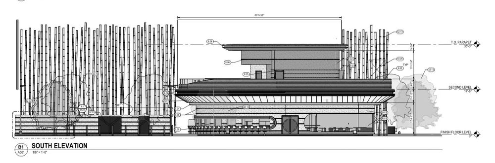 Il piano inferiore del ristorante sarà composto da una cucina, un bar interno ed un bar esterno. Il piano superiore sarà composto da altre aree di ristoro, un altro bar e un salotto in stile cinema con vista su due schermi cinematografici situati nell’area di parcheggio.