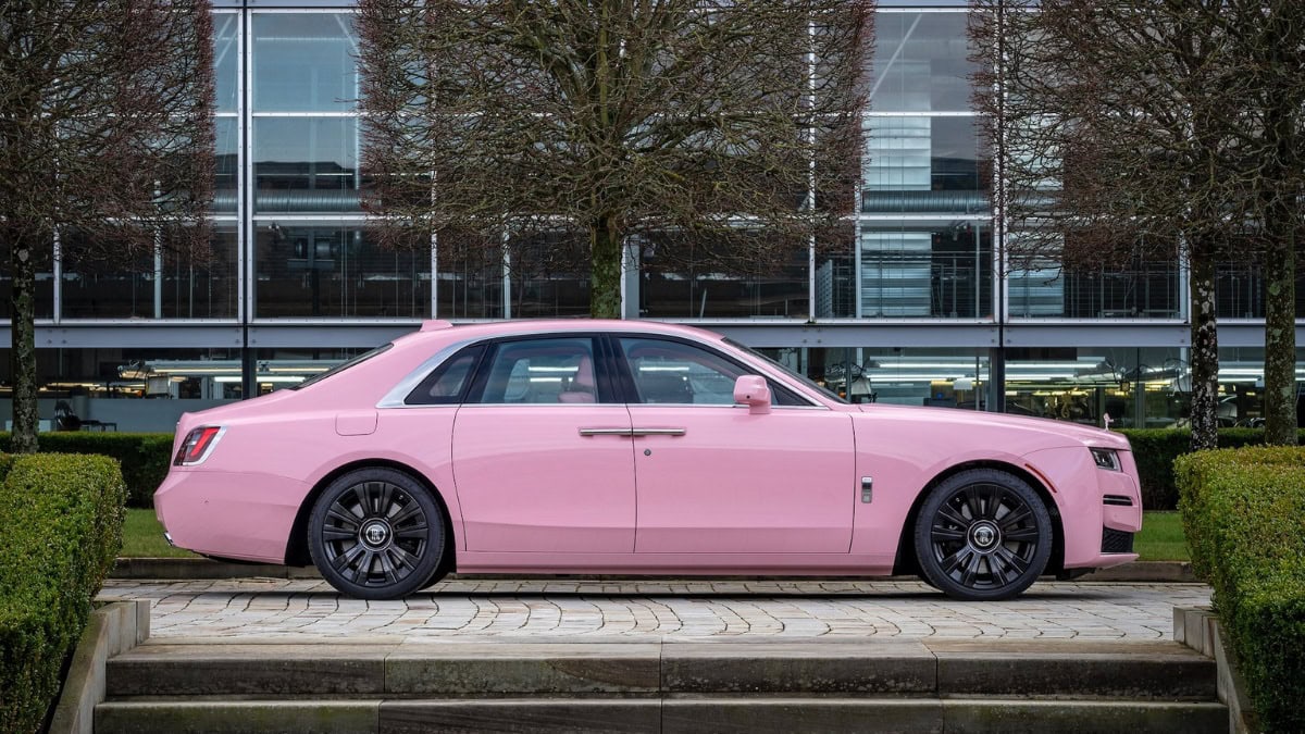 Vista l’imminente uscita del film di Barbie, con una splendida Margot Robbie a fare da protagonista, questa Rolls-Royce Ghost sembra quasi fatta apposta, anche se pare non c’entri nulla. Comunque, è a metà tra l’auto della celebre bambola e la Ford Mustang tutta fucsia di Sharpay in High School Musical 2.