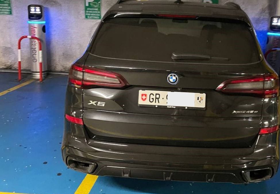 Il furbetto italico parcheggia il macchinone non elettrico nel posto riservato alle auto elettriche e pure fuori dalle righe. Poi, per simulare la ricarica, appoggia la presa della corrente sulla ruota: tanto gli svizzerotti sono fessi e non si accorgono di niente!