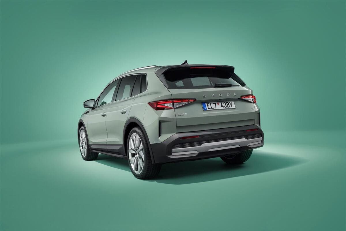 Il design della Skoda Elroq adotta il nuovo linguaggio stilistico Modern Solid, che segna un’evoluzione per il marchio ceco. Il frontale è caratterizzato dalla Tech-Deck Face nera lucida, che nasconde radar e telecamera, mentre il classico logo Skoda è sostituito dalla scritta del marchio in maiuscolo. Il design dei fari, disponibili anche a matrice di LED, riprende i “quattro occhi” tipici dei SUV Skoda, offrendo un look contemporaneo e raffinato. Con un coefficiente aerodinamico di 0,26, la Elroq si distingue per l’efficienza, aiutata anche dai cerchi in lega ottimizzati, disponibili da 19 a 21 pollici.