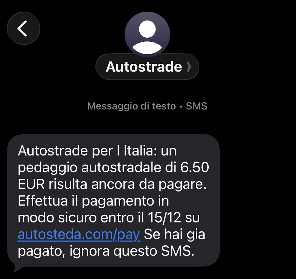 La richiesta di pagamento di 6,50 euro appare vaga. I pedaggi reali sono legati a un preciso tratto percorso, a una data e a un casello. In questo SMS non c’è alcun riferimento al viaggio, alla targa o al momento in cui sarebbe stato effettuato il transito.