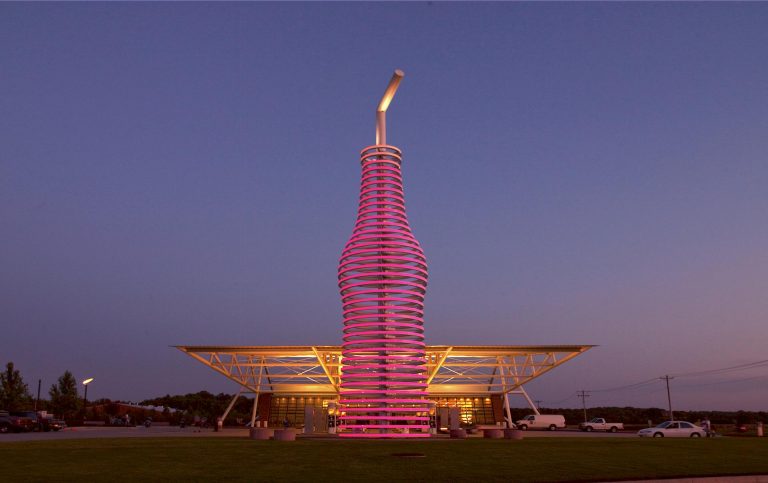 La stazione di servizio a forma di teiera è ormai un’ex stazione di servizio. La simpatia della forma cela un problema politico: si tratta di una sorta di manifesto sullo scandalo Teapot Dome che ha scosso la presidenza di Warren G. Harding. Venne incarcerato l’allora Segretario degli Interni Albert Fall per il suo ruolo nel leasing delle riserve petrolifere governative.