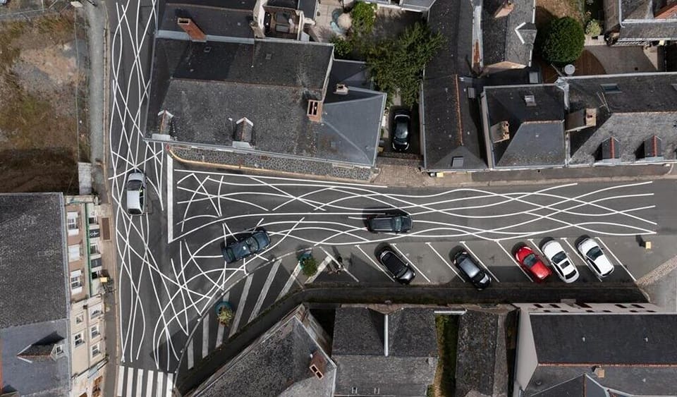 Dipingere linee a caso sull’asfalto per ridurre la velocità degli automobilisti. No, non stiamo parlando dei famigerati incroci milanesi ma del tranquillo villaggio di Bauné, situato nell’ovest della Francia, dove l’incrocio principale negli scorsi è stato “decorato” da una serie di strane linee bianche incrociate.