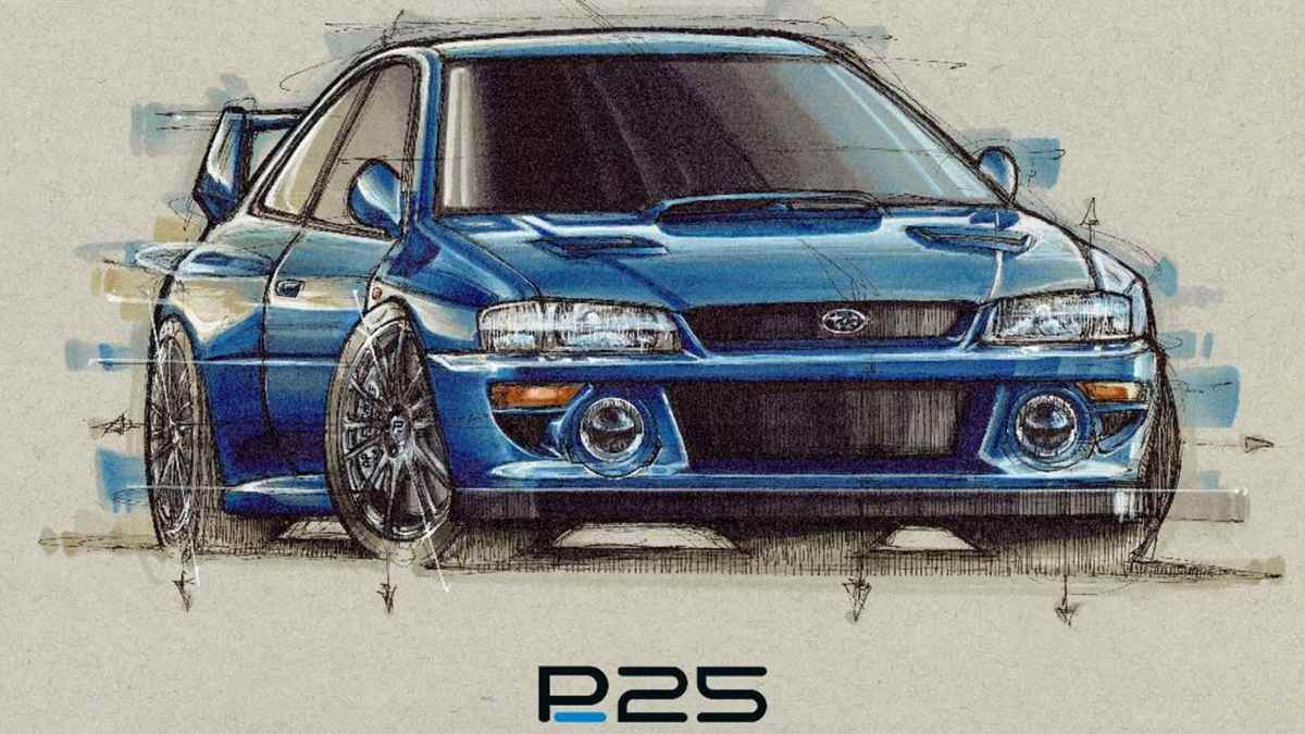 La Subaru Impreza P25 Restomod è forse la Impreza più potente mai prodotta. Tutti i 25 esemplari sono basati su carrozzeria WRX originale a due porte con pannelli in carbonio progettati insieme a Peter Stevens, colui che disegnò le Impreza originali e la McLaren F1. L’uso di materiali compositi per cofano, tettuccio, bagagliaio, minigonne, parafanghi anteriori e posteriori, specchietti, spoiler e paraurti ha permesso di ridurre il peso a 1.200 kg, 45 in meno rispetto alla Impreza 22B del 1998.