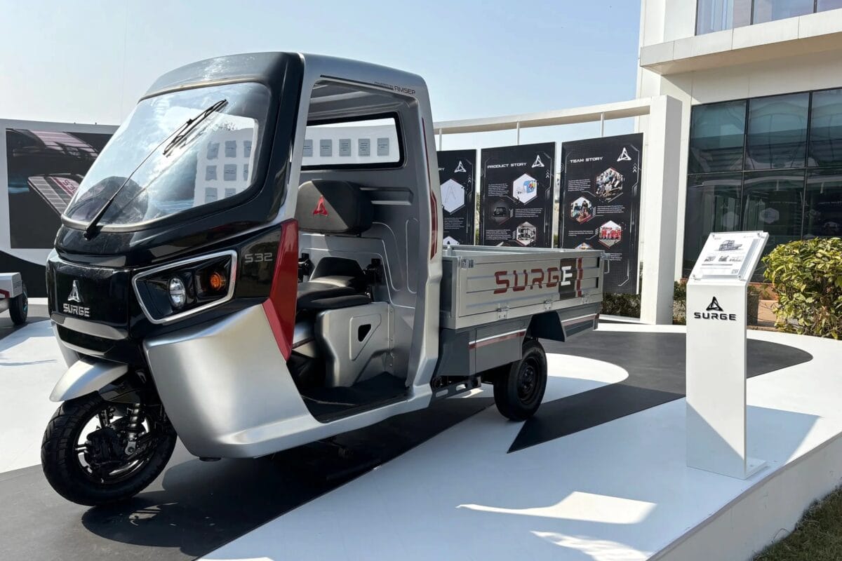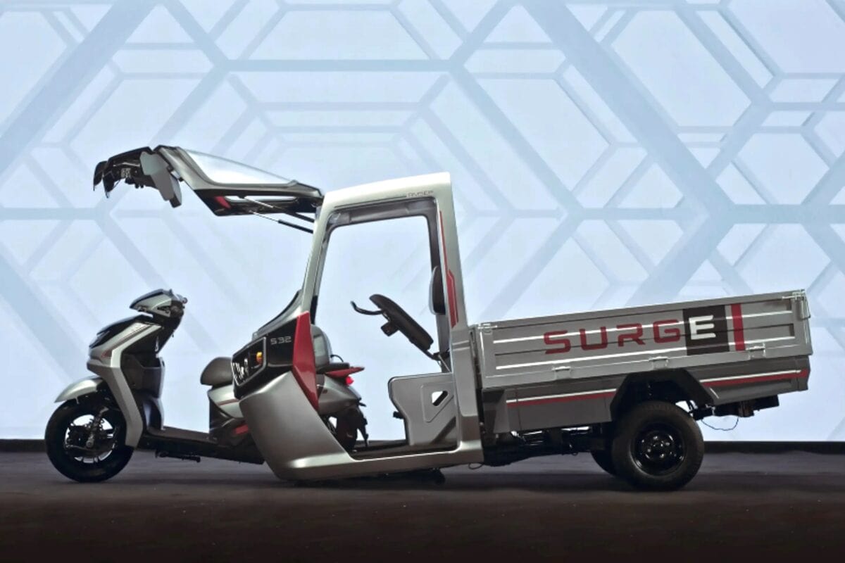 Prodotto da Surge Automobiles, azienda indiana all’avanguardia nel settore dei veicoli elettrici, l’S32 si distingue per essere il primo veicolo al mondo adattabile al segmento di riferimento. Il cuore dell’S32 è la sua Piattaforma Elettrica Modulare Avanzata e Scalabile (AMSEP), che funge da telaio per il 3 ruote. Questa piattaforma incorpora le batterie rimovibili del veicolo, il motore sull’asse posteriore, l’elettronica del sistema di trasmissione e le ruote posteriori.