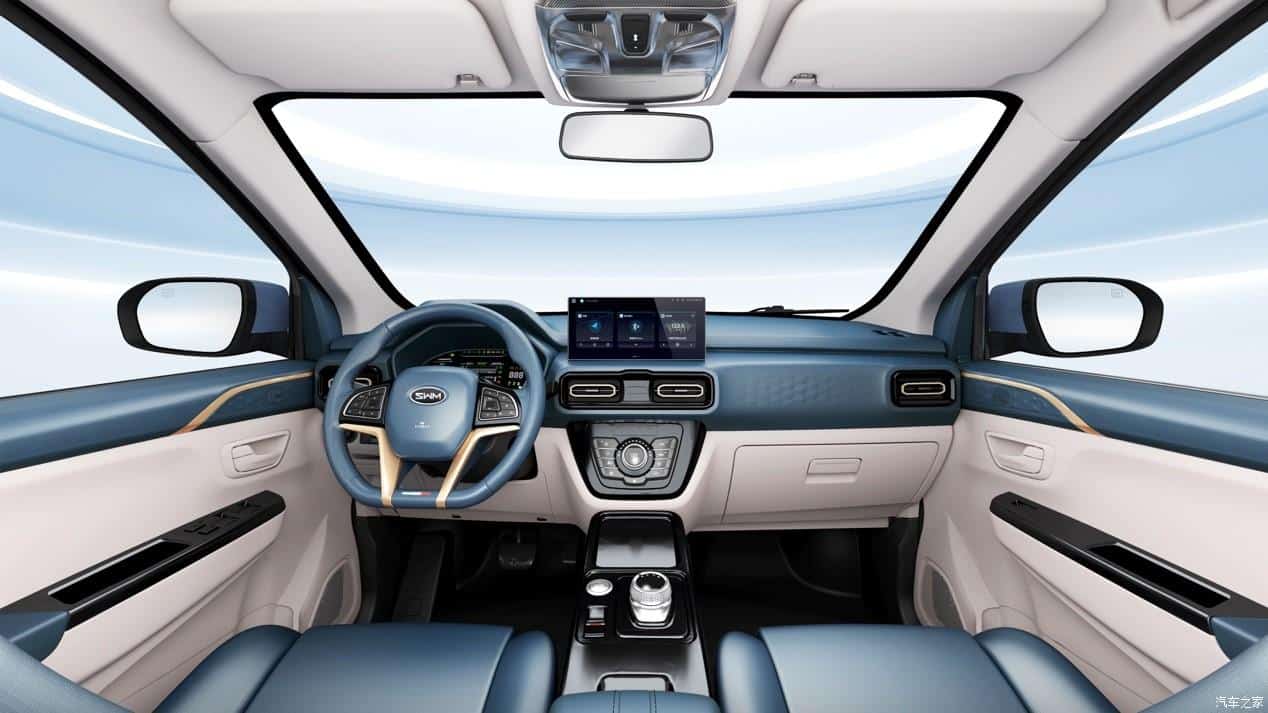Dentro sembra più piacevole, con colori che riprendono gli esterni e un design più moderno, ma visto il prezzo è probabile che sia tutta plastica rigida. Comunque, c’è un display touch centrale da 10,25” che muove l’infotainment e i moderni sistemi di sicurezza.