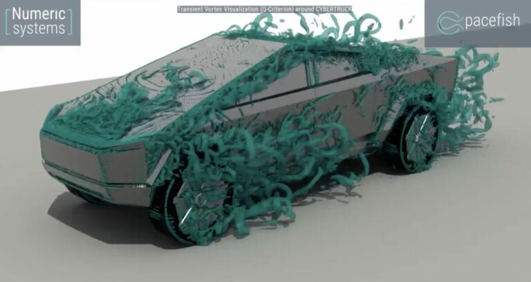 I risultati mostrano chiare strutture turbolente create dal bordo anteriore che collega il paraurti e il cofano, dal bordo verticale dietro i fari anteriori, dalle “protezioni” dei passaruota/geometria spigolosa circostante, dallo stile dei cerchioni e dalla geometria dei montanti. La generazione di strutture turbolente è causata dalla spigolosità di questi bordi. Queste caratteristiche geometriche aumentano la resistenza aerodinamica del veicolo, riducendo in ultima analisi l’autonomia del Cybertruck.