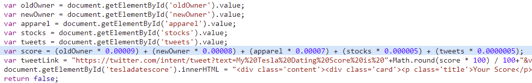 TheDrive ha pubblicato il codice sorgente del calcolo, che è comunque in chiaro nel codice html della pagina: