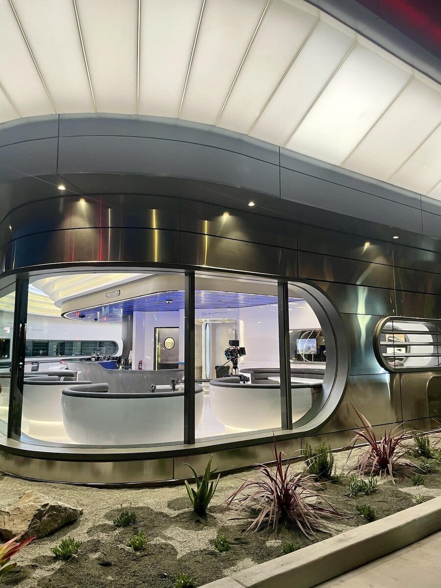 Il progetto del diner, del quale ci eravamo occupati circa tre anni fa, richiama le atmosfere dei classici diner americani anni ’50. Come possiamo vedere dalle foto condivise su Reddit, ci sono insegne al neon, sedute in pelle rossa e un’estetica cinematografica, ma tutto reinterpretato con la tecnologia di oggi.