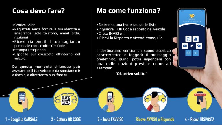 Nel caso ci fosse un problema, il “buon samaritano” potrà mettersi in contatto con voi tramite messaggi predefiniti come “attenzione cane o gatto in auto”, “attenzione prossimità incendio” oppure “ritrovato documento di identità”. Proprio perché gli avvisi sono predefiniti, non c’è possibilità di ricevere messaggi sconvenienti o volgari.