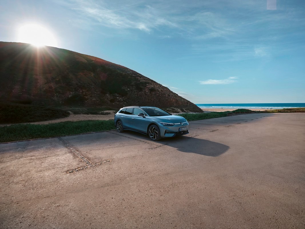 Il design della ID.7 Tourer è caratterizzato in prima istanza dalla linea del tetto allungata. Dal punto di vista estetico, questa Tourer è il risultato della fusione tra la classica Passat Variant e una Shooting Brake particolarmente dinamica. Grazie alla maggiore altezza della coda, rispetto alla berlina fast-back la capacità del bagagliaio risulta ancora più generosa: con cinque persone a bordo, la ID.7 Tourer può ospitare un volume di bagagli massimo di 605 litri. Caricata fino agli schienali dei sedili anteriori e per tutta l’altezza dell’abitacolo, questo valore raggiunge secondo le stime i 1.714 litri. A seconda dell’equipaggiamento, anche i cerchi in lega da 19 a 20 pollici sono stati perfezionati sotto l’aspetto aerodinamico. Seguirà inoltre un cerchio da 21 pollici.