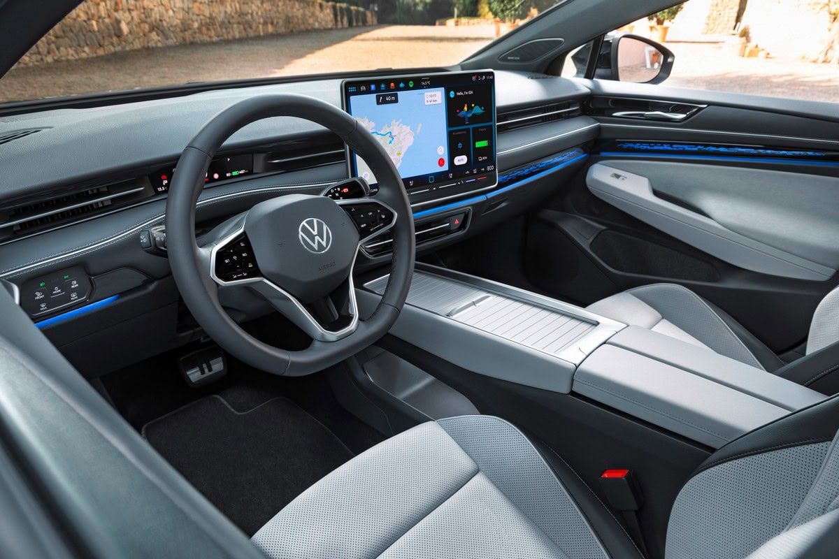 La nuova ID.7 Tourer avrà un ampio equipaggiamento di serie, come dimostra la versione Pro. Gli equipaggiamenti di serie per gli esterni comprendono fra l’altro, fari e gruppi ottici posteriori a led, cerchi in lega da 19 pollici torniti a specchio e mancorrenti sul tetto. L’equipaggiamento tecnologico e degli interni include sistema di apertura e avviamento senza chiave Keyless Access, rete fermacarico, illuminazione d’ambiente a 10 colori, volante multifunzione riscaldabile, sistema di navigazione Discover Pro Max, display head-up con realtà aumentata rivisitato, retrocamera, climatizzatore automatico a tre zone Air Care Climatronic con bocchette di ventilazione intelligenti e sedili anteriori riscaldabili.