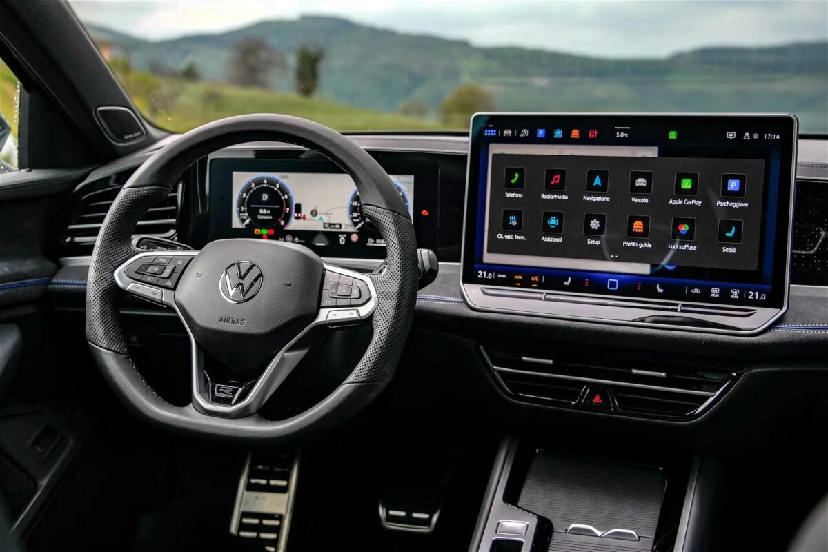 Il sistema di infotainment è dominato da un grande schermo touch da 15 pollici, opzionale, mentre di serie è disponibile uno schermo da 12,9 pollici. Il sistema operativo MIB4 offre un’interfaccia utente intuitiva e reattiva, integrando tutte le principali funzioni di navigazione, intrattenimento e climatizzazione. Il quadro strumenti digitale è chiaro e personalizzabile, fornendo al conducente tutte le informazioni necessarie in modo immediato. Da notare che i comandi alla base del display dell’infotainment sono touch e finalmente retroilluminati, come richiesto in passato un po’ da tutti.