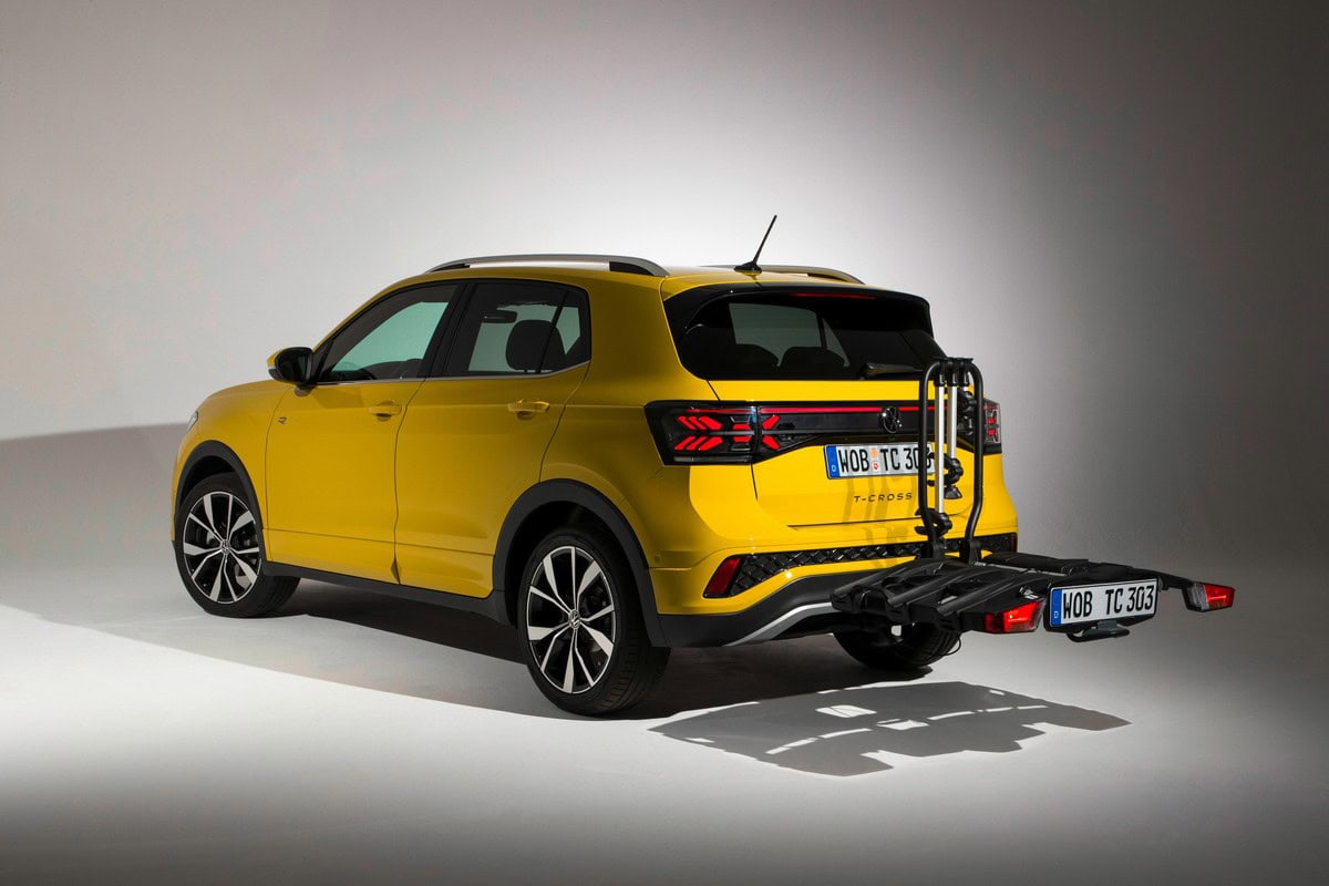 La Volkswagen ha aumentato significativamente il carico statico verticale della T-Cross, che passa da 55 a 75 kg. Grazie a questa maggiorazione di 20 kg aumenta il peso che può gravare dall’alto sul gancio di traino rimovibile (in opzione). Di conseguenza, la nuova T-Cross offre sia maggiori riserve per il traino di rimorchi pesanti, che un maggiore peso massimo ammesso per le biciclette trasportate sul gancio di traino tramite supporto.