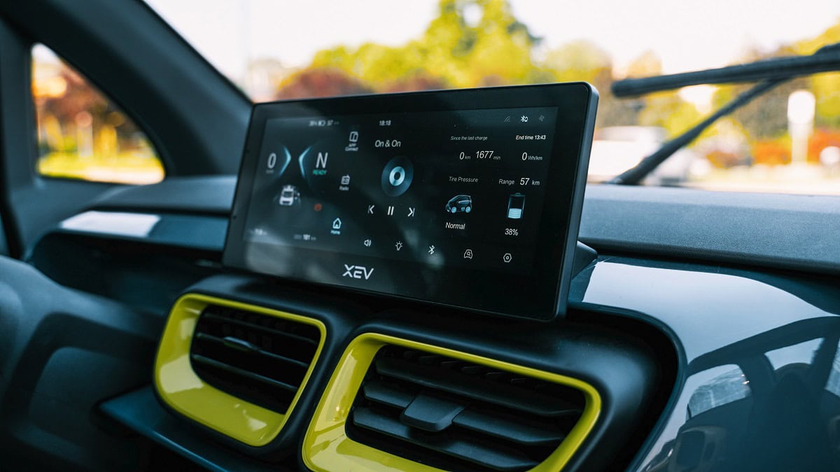 Gli interni della XEV Yoyo 2023, rispetto al passato, guadagnano in tecnologia: allo schermo base da 7 pollici si aggiunge un display touch da 10 pollici, con collegamento Apple CarPlay e Android Auto.