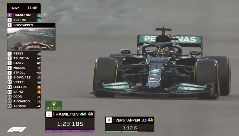 Hamilton in lotta feroce con Verstappen nelle qualifiche del Gp di Abu Dhabi: giro pazzesco di Verstappen con Hamilton dietro di 0.371.