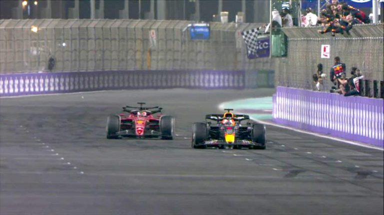 Rivediamo insieme le immagini delle parti salienti del GP F1 Arabia Saudita 2022 con il duello tra Verstappen e Leclerc che ha visto vittorioso l’olandese sul ferrarista. Terzo posto all’altra rossa guidata da Sainz.