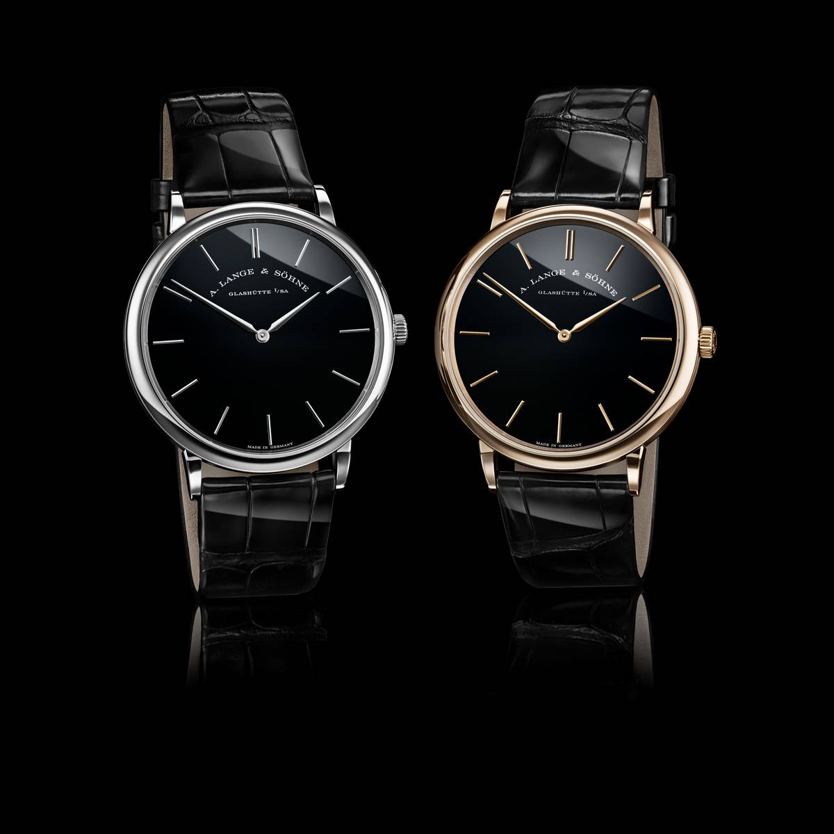Nella versione in oro miele 750, tonalità esclusiva sviluppata da A. Lange & Söhne, il nero intenso dell’onice dialoga con la calda luminosità del metallo prezioso. Nella variante in platino 950, invece, il contrasto tra la freddezza del metallo e la profondità della pietra accentua il rigore del design. Due interpretazioni opposte, unite da una stessa idea: l’essenzialità come forma suprema di eleganza.
