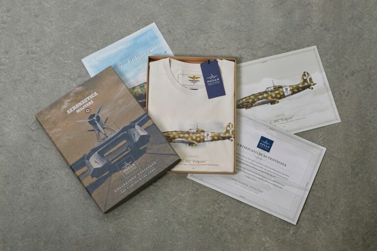 La nuova capsule collection Musam di Aeronautica Militare è un omaggio alla storia ed è dedicata agli amanti dell’aviazione e a chiunque sia affascinato dallo stile distintivo del brand. La collezione si compone di cinque t-shirt da collezione, ciascuna delle quali narra le gesta epiche e i primati straordinari di alcuni fra i più celebri velivoli esposti al Museo Storico dell’Aeronautica Militare di Vigna di Valle. Ogni maglietta, oltre a essere un capo di abbigliamento, si presenta come una vera e propria narrazione visiva, catturando l’essenza di un’epoca e celebrando le imprese audaci che hanno definito il volo umano.