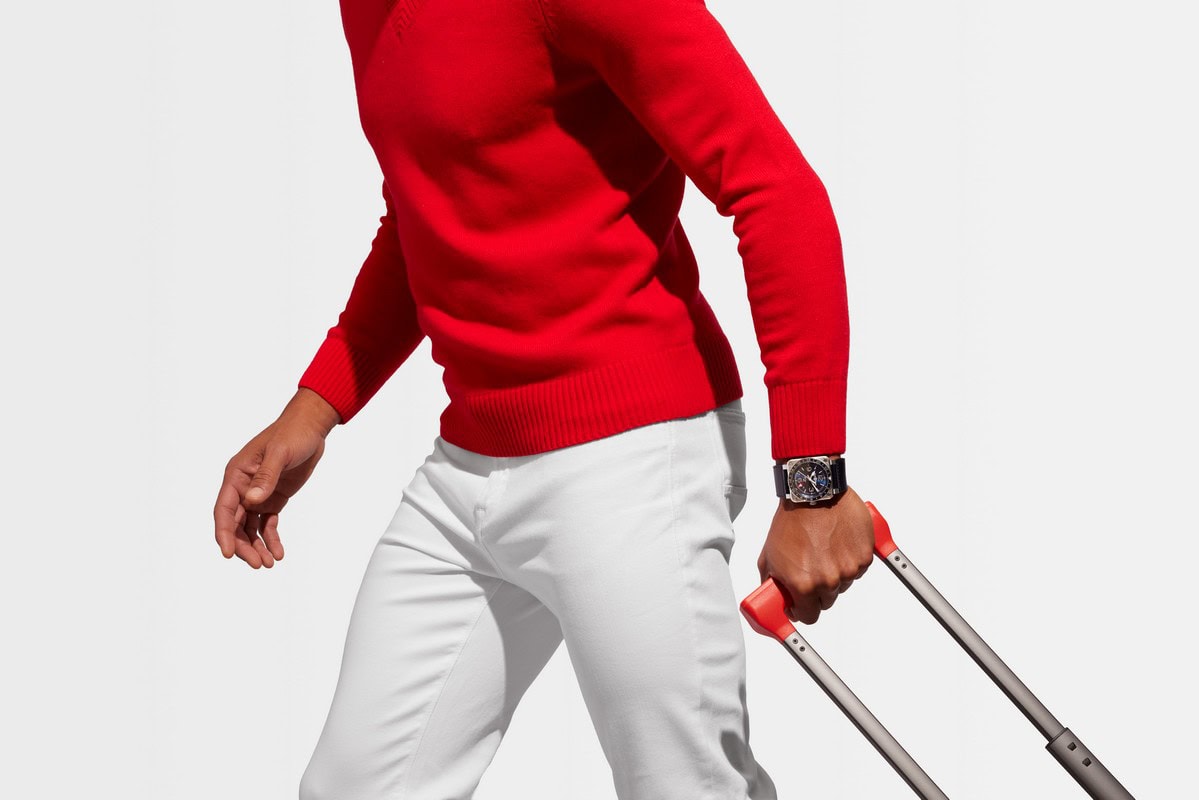 vantaggio principale è un grande triangolo indicatore rosso che punta al secondo fuso orario, per non parlare dell’ora locale sulla lunetta bidirezionale bicolore, che mostra le ore diurne e notturne su una scala graduata di 24 ore.