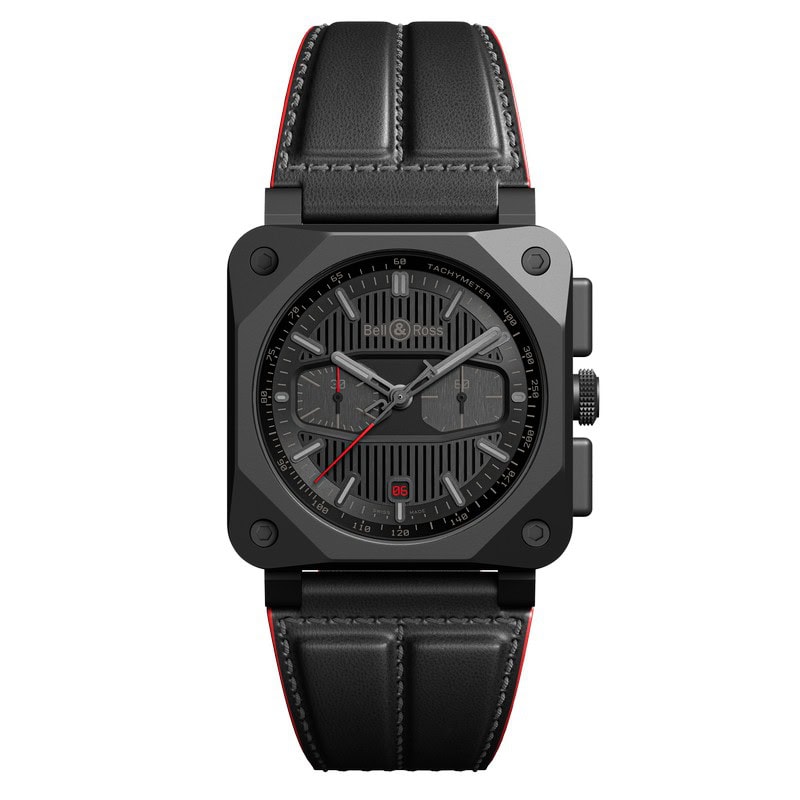 Ancora una volta, l’iconico design Bell & Ross si manifesta in una maniera sorprendente con il nuovo cronografo BR 03-94 Blacktrack, che presenta una cassa di 42mm in ceramica opaca nera, impermeabile fino a 100 metri. Il suo aspetto è ancora ispirato all’universo dell’aeronautica.