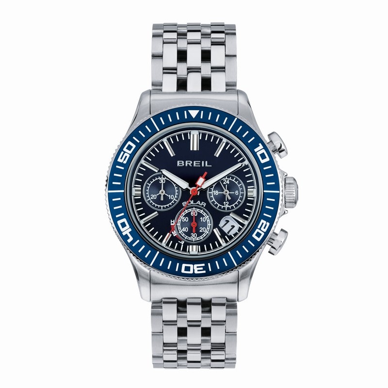 A ore 12 il logo Breil. Tra le funzioni, la data con lente di ingrandimento, trova spazio tra le ore 4 e 5. Gli orologi sono dotati di bracciali in acciaio 7 maglie con finitura bilux e chiusura di sicurezza. I cronografi Manta 1970 Solar presentano il fondello e la corona a vite a garanzia dell’impermeabilità fino a 20 atmosfere.