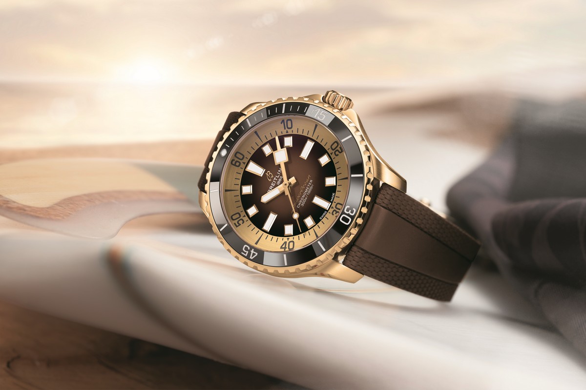 Breitling SuperOcean è la nuova rivisitazione dell’orologio sportivo da immersione. La nuova collezione ridefinisce l’estetica essenziale dell’originario SuperOcean Slow Motion degli anni ‘60 e ‘70, arricchendola con funzionalità moderne e una luminosa palette di colori. Non si tratta più soltanto di un orologio subacqueo in senso stretto, ma di un modello perfetto anche per il nuoto, il surf e come accessorio da sfoggiare in spiaggia.