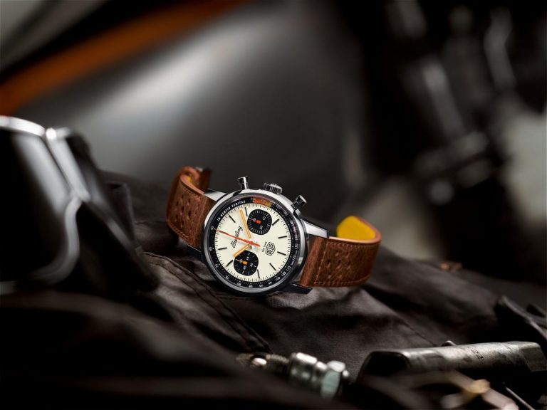 Il fondocassa in acciaio da 41 millimetri mostra l’incisione di un motociclista dall’aspetto rétro che va a tutto gas, iconica opera d’arte Deus disegnata da Carby Tuckwell, direttore creativo dell’omonima casa. Monta il Calibro Breitling 23, ha una riserva di carica circa 48 ore e come tutti i modelli Breitling è certificato COSC come cronometro.