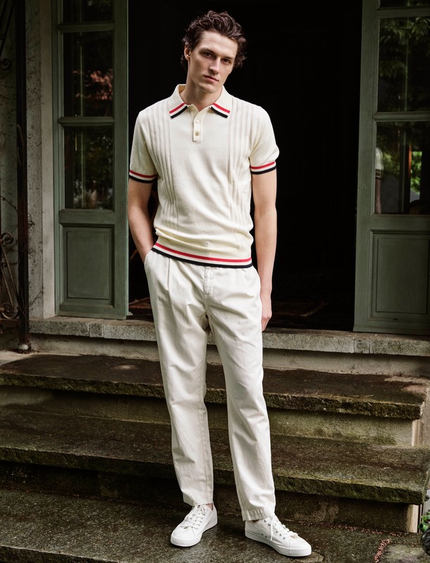 Non manca, infine, una speciale capsule tennis, ispirata ai mitici 80’s, quando quel modo di vestire usciva al campo di gioco per essere indossato nella vita quotidiana. Polo e maglie, unite, a trecce o con bordi rigati, vengono proposte in tre colori dal sapore mariniere: rosso, navy e bianco. Aggiunte di stile per una collezione senza tempo.