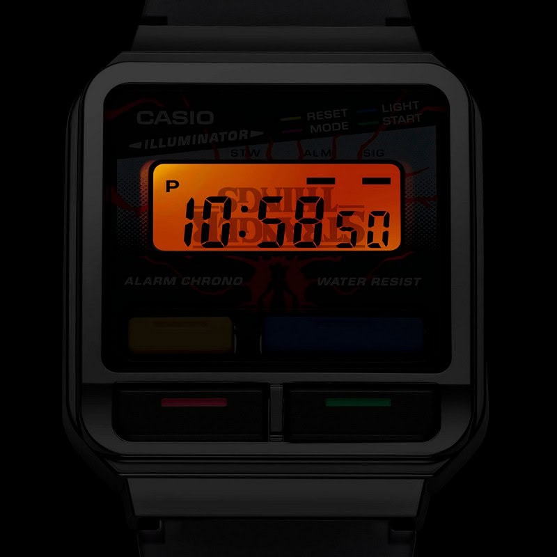 Il design del nuovo modello trae ispirazione proprio da Stranger Things, la serie ricca di riferimenti alla cultura degli anni Ottanta. Basato sulla cassa A120, che celebra i modelli digitali rilasciati da Casio negli anni ’80, il design di questo orologio rende omaggio al “Sottosopra”, una dimensione alternativa che esiste parallelamente al mondo umano.