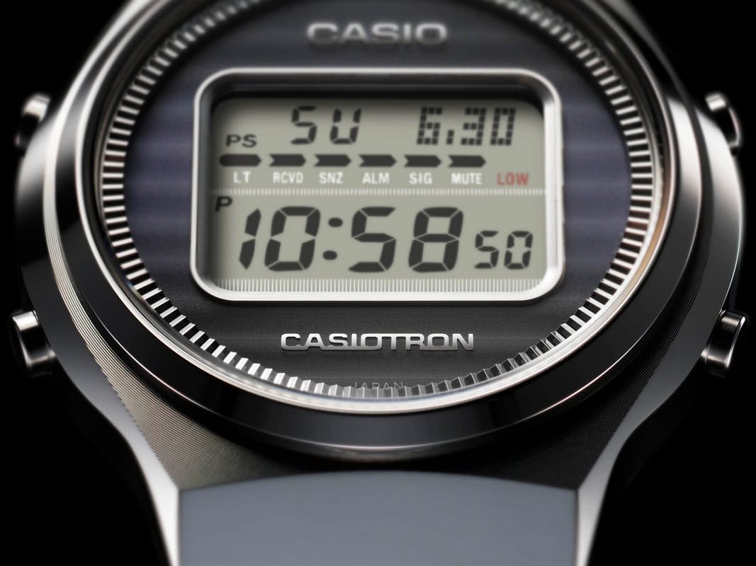 Fedele al design del 1974, il nuovo modello ricrea l’aspetto esterno dell’originale Casiotron, dalla dimensione della cassa al quadrante blu scuro, fino al logo Casiotron. La praticità è garantita anche dal display STN ad alta leggibilità e dal sistema di ricarica solare, mentre la funzione Mobile Link assicura una regolazione dell’ora precisa attraverso la connessione Bluetooth con lo smartphone.