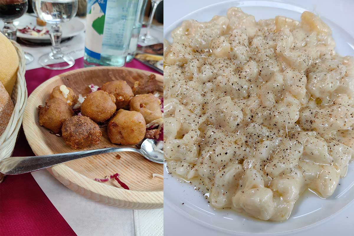 Siamo saliti in cima ai monti, abbiamo finalmente superato le nuvole e tornati giù. Visto che era ora di pranzo ma anche di tornare a casa siamo risaliti sul nostro furgoncino alla volta di Chiavenna che avevamo già superato all’andata. Ovviamente era ora di pranzo e ne abbiamo approfittato per assaggiare le specialità del luogo: gli sciatt e gli gnocchetti di Chiavenna. I primi sono pezzetti di formaggio ricoperti di grano saraceno e fritti, mentre i secondi sono una versione rivisitata dei pizzoccheri.