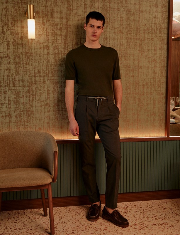 Travel & Gather, le principali aspirazioni dell’uomo contemporaneo, il desiderio di viaggiare, di incontrarsi e di stare insieme nei luoghi che amiamo. La collezione primavera estate 2023, la cui palette colori si sviluppa tra blu, grigi, marroni, neutri, pastelli, malva e cedro, è suddivisa in Main, Natural Wonders e Active. Tre proposte che poggiano su un comune denominatore, l’ispirazione a modelli iconici reinterpretati in chiave Elevated Casual, che si differenziano nell’utilizzo di materiali e occasioni d’uso. Una collezione, dai fit perfetti, che parte da una proposta di pantaloni evoluta e si apre su blazer dal taglio contemporaneo, una raffinata maglieria e un’inedita collezione di camicie.