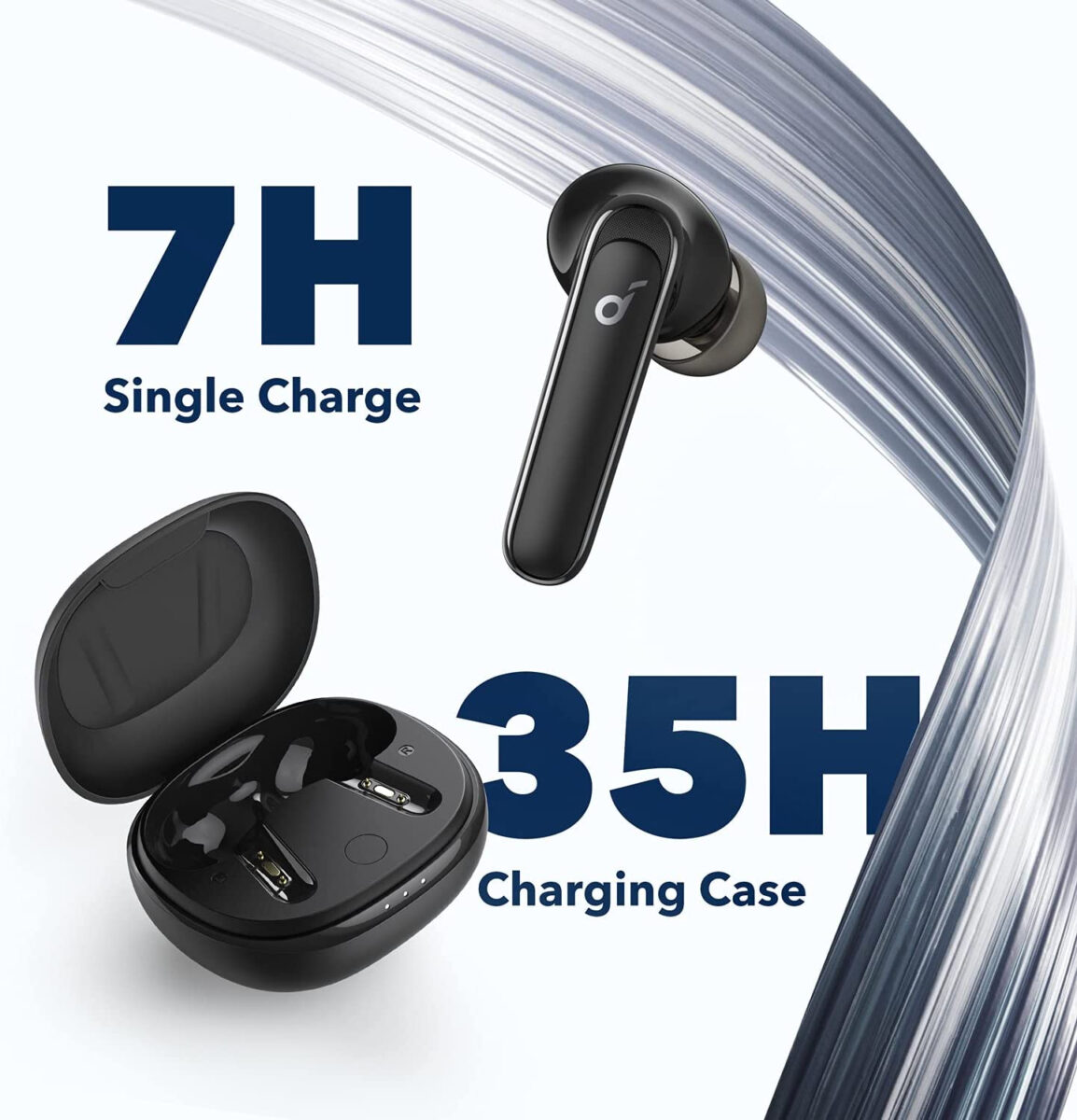 Standard elevati per queste eccezionali cuffie Bluetooth con cancellazione del rumore, offrono 7 ore di riproduzione con una singola ricarica e fino a 35 ore con la custodia di ricarica compatta.