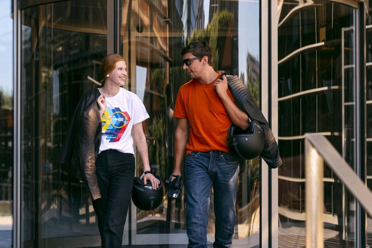 La nuova linea Scrambler, composta da giacche uomo e donna con protezioni in tessuto soft-shell, guanti e casco jet Arai, si integra perfettamente con i capi più casual a marchio Ducati, come i jeans tecnici e le giacche in pelle dal sapore spiccatamente cittadino. Più evoluta e divertente che mai, questa collezione è perfetta per attraversare la giungla urbana e oltrepassare i propri confini.
