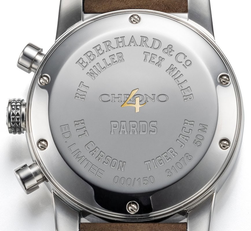 Il terzo modello, in edizione limitata di 75 esemplari, si distingue per il quadrante color sabbia, abbinato a una particolare cassa in acciaio rivestita in DLC (DLC-Brownz) di colore marrone, utilizzato per la prima volta da Eberhard & Co. Questo particolare rivestimento color marrone dall’effetto satinato conferisce al modello un’estetica vintage che ricorda i colori dei paesaggi del Far West e viene abbinato a un cinturino in pelle.